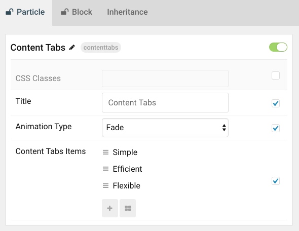 The Content Tabs particle enables you to pack a lot of useful information into a compact space that is easy to configure and intuitive to navigate.